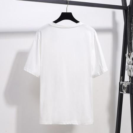 Plus Size Women's Fat Summer New Solid Color Basic V-Neck Short-Sleeved T-Shirt Women
