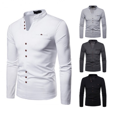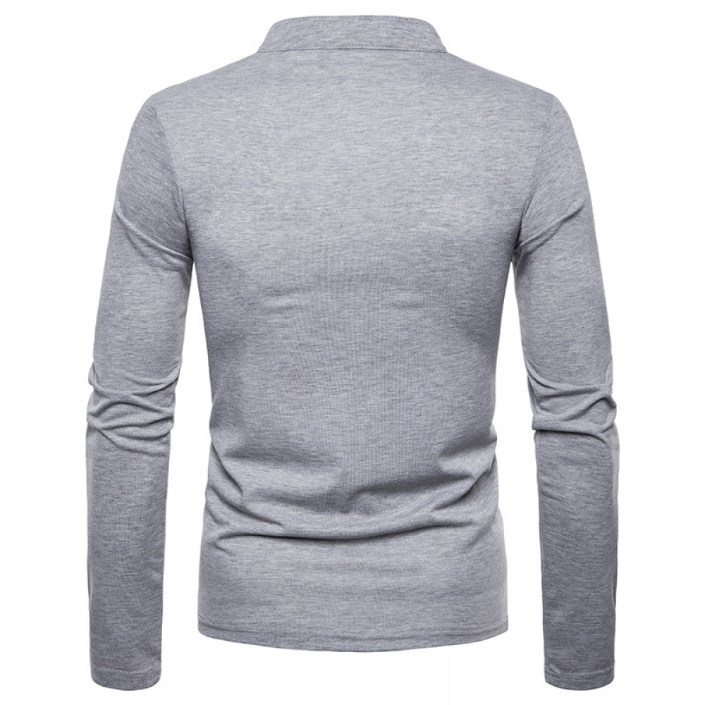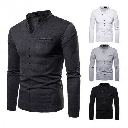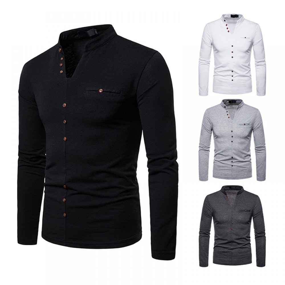 Men's Irregular Stitching Long-Sleeved Plus Size Henry Collar T-Shirt