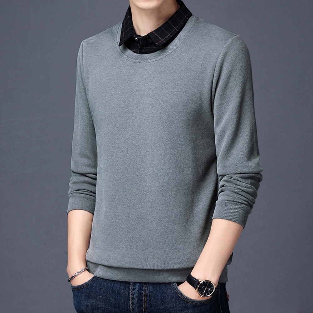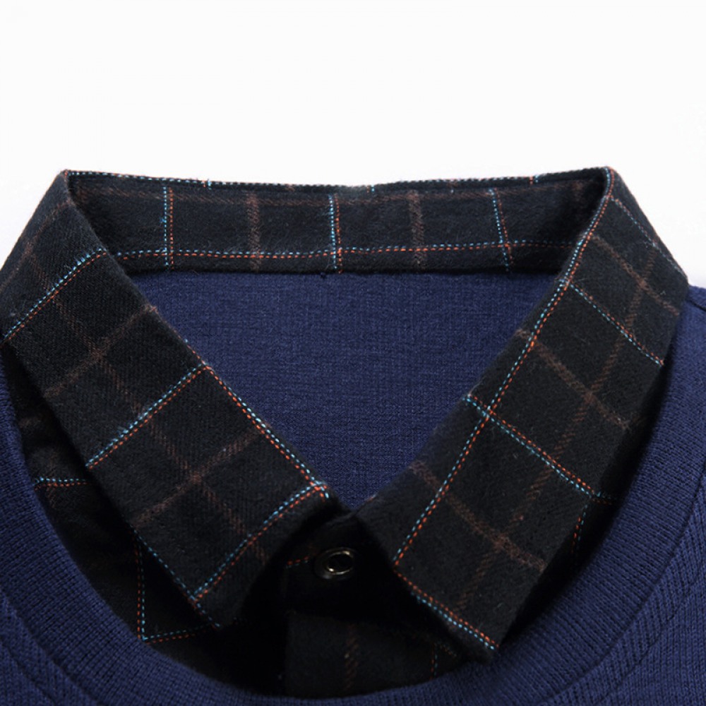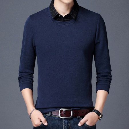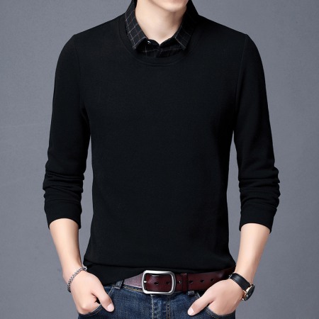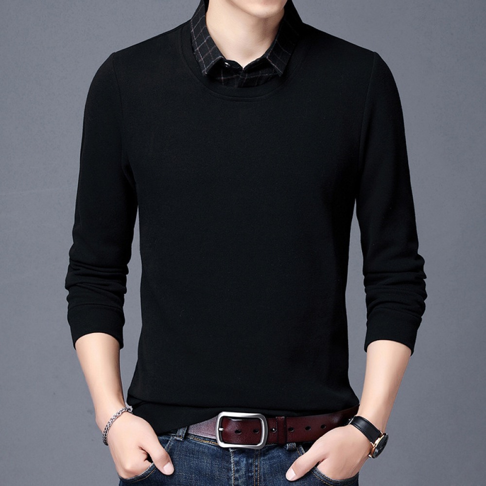 New Fake Two-Piece Men's Long-Sleeved T-Shirt Korean Style Slim Collar Solid Color Shirt