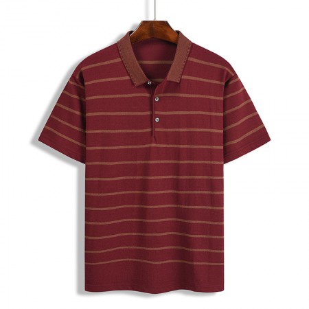 New Summer Men's Pullover Loose Striped Lapel T-Shirt Mens Short Sleeve